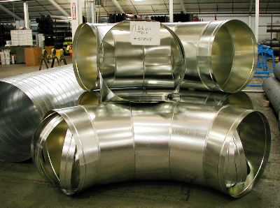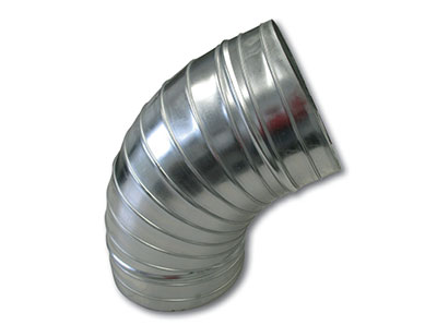 - 45° and 90° 1-1/2 Centerline Elbows from 4″ to 18″ diameter 26 gauge galvanized construction