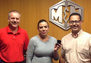 Left to right are Jeff Wilson, Supervisor, Angelica Gomes, and Daniel Espinoza, Shop Foreman, as she is congratulated upon presentation of her M&M 20 year gold ring. Angelica works in the fitting department at the North Fort Worth plant.M&M is ...Continue Reading
