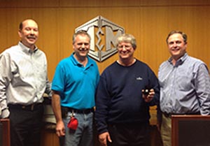 Left to right are Keith Highland, COO, Jeff Wilson, Supervisor, Bernie Raines and Rob Felton, President, as he is congratulated upon presentation of his M&M 20 year gold ring. Bernie works in the fitting department at the North Fort Worth ...Continue Reading