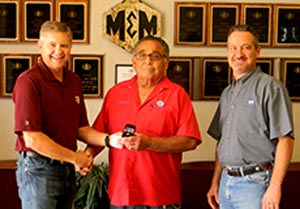 Left is Weldon Weeks, Branch Manager presenting Manual Valdez his M&M 20 year gold ring. Rodney McCormac, Assistant Branch Manager is on the right. Manual is a production worker at M&M’s Dallas manufacturing plant.M&M is proud of its tradition of ...Continue Reading